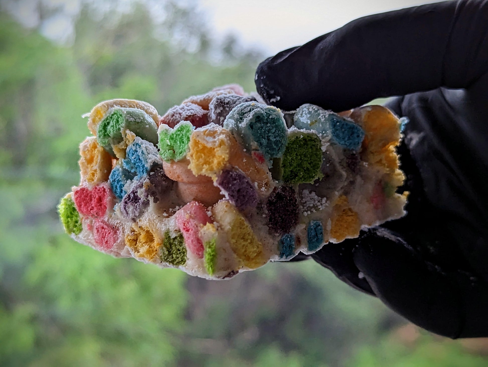 *Ā Fruit and BerriesĀ -Ā These treats are made with a 50:50Ā blend of fruit and crunchy berry cereal! These treats also contain orange zest, vanilla paste, coconut oil, and sea saltĀ to help elevate the fruity and berry flavors within the cereal. These treats can also be enhanced with an optional raspberry or strawberry chocolate drizzle.